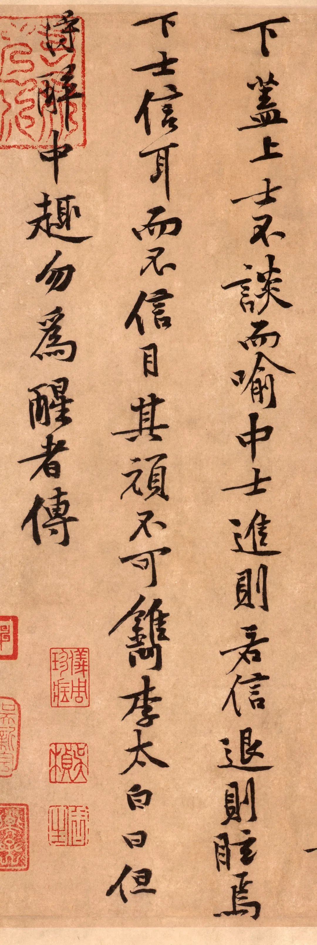 【5】下。盖上士不谈而喻;中士进则若信,退则眩焉,下士信耳,而不信目,其顽不可镌。李太白曰:“但得醉中趣,勿为醒者传。”