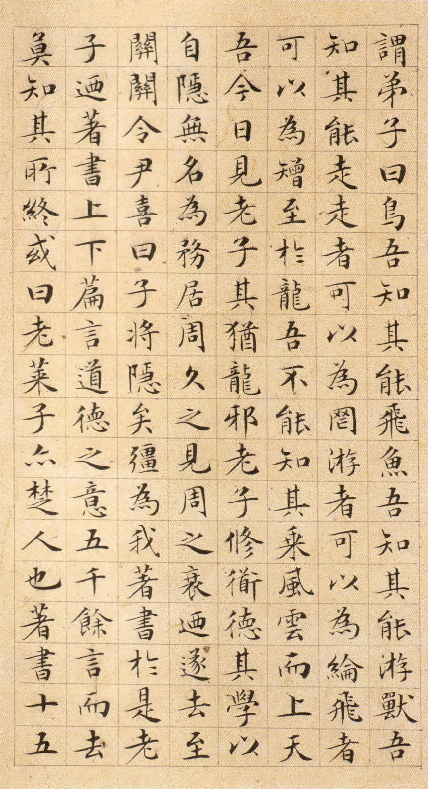 文徵明小楷《太上老君说常清净经》、《老子列传》合册,纸本,纵20.9厘米,横11厘米,每页8行,正文每行18字。现藏天津市艺术博物馆。