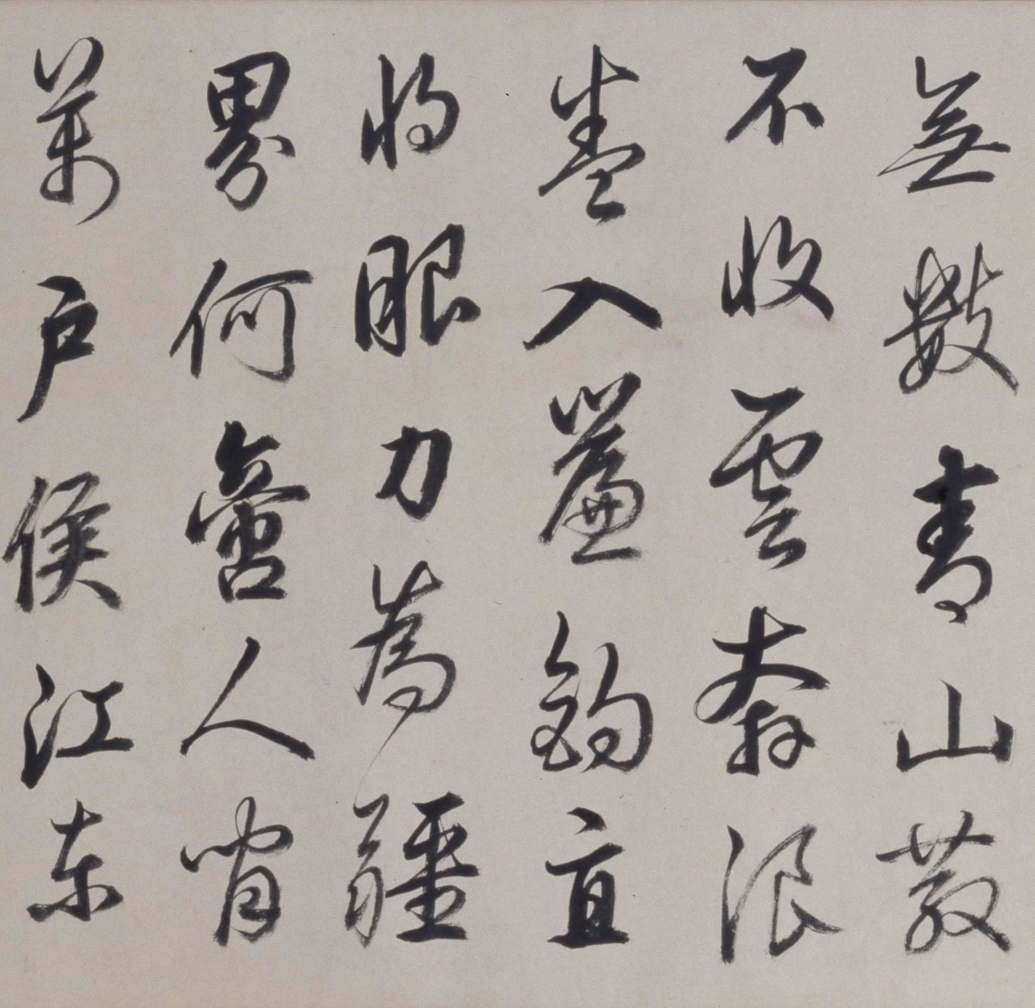 释文:目尽孤鸿落照边,遥知风雨不同川。此间有句无人会(原诗为“识”),送与襄阳孟浩然。云山烟水苦难亲,野草幽花各自春。赖有高楼能聚远,一时收拾与闲人。无数(原诗为“限”)青山散不收,云奔浪卷入帘钩。直将眼力为疆界,何啻人间万户侯。江东贾客木棉裘,会散金山月满楼。夜半潮来风又烈,卧吹箫管到扬州。