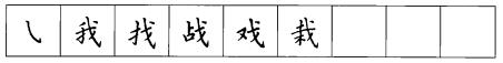 4.斜钩:又叫戈钩。顿笔向右下方画圆弧线,由重到轻,至末端最重,再向右上方出钩。如开张的弓,饱满有力。斜钩常在字中做主笔,在这类字里,因为有了斜钩而精彩,所以要写的顶天立地,宜长不宜短。例如:“我”字中的斜钩。