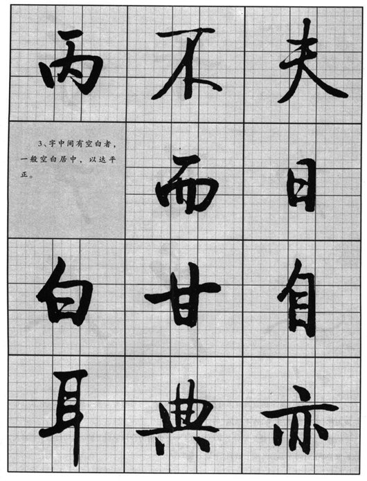 二、疏密匀称。汉字的点画有多有少,结构有简有繁,书写时要安排得疏密得当,有紧有松,均衡匀称,达到“疏可走马,密不透风"的效果。