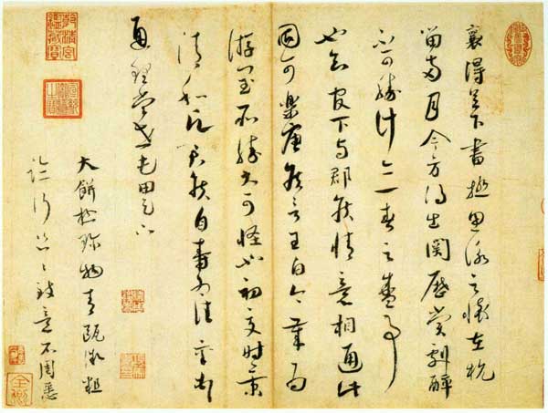尺牍《思咏帖》,1051年,纸本,纵29.7厘米,横39.7厘米。台北故宫博物院藏。尺牍《思咏帖》释文:襄得足下书,极思咏之怀。在杭留两月,今方得出关,历赏剧醉,不可胜计,亦一春之盛事也。知官下与郡侯情意相通,此固可乐。唐侯言:王白今岁为游闰所胜,大可怪也。初夏时景清和,愿君侯自寿为佳。襄顿首。通理当世屯田足下.....