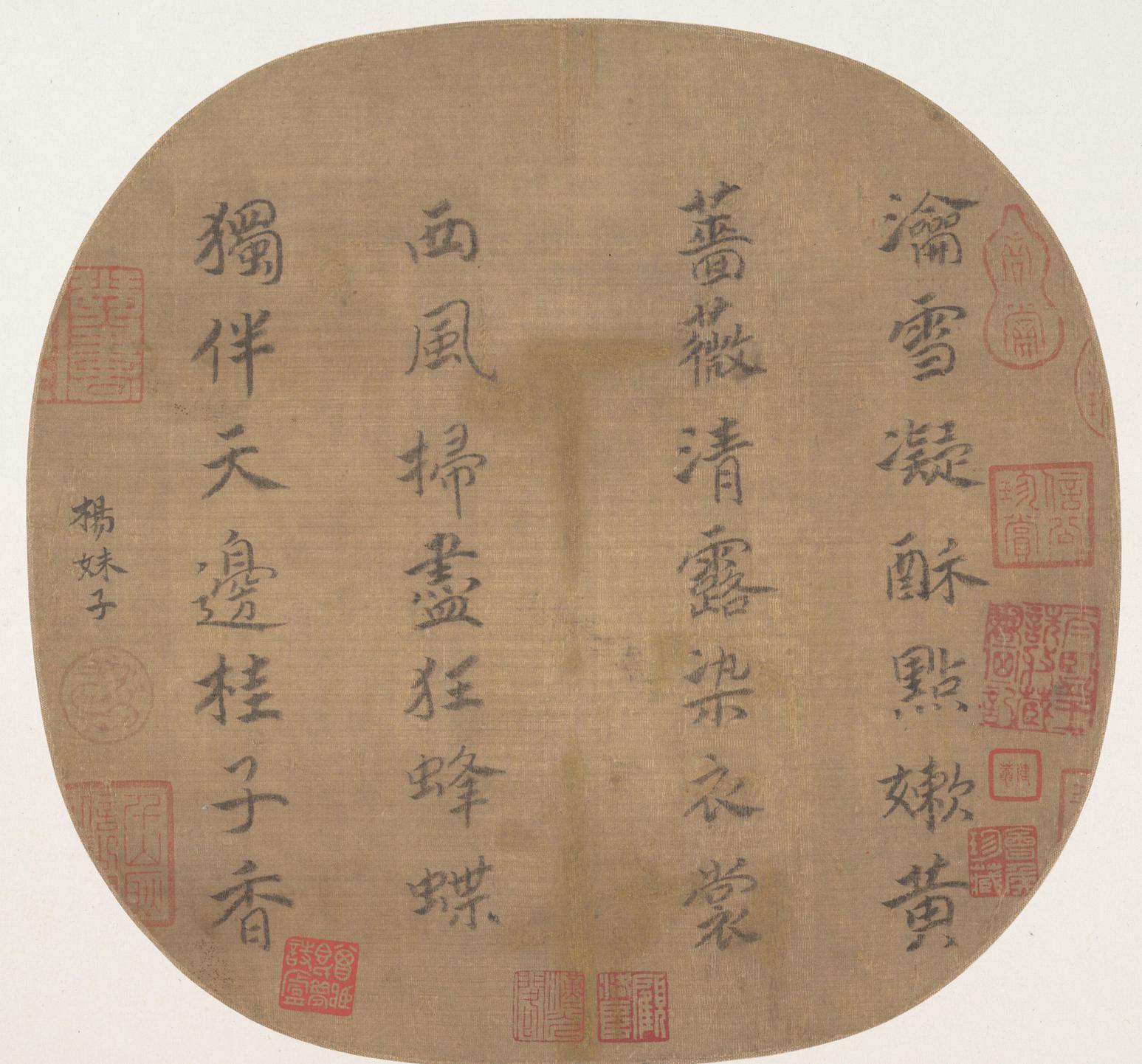 董其昌《自书七绝诗轴》,绫本,行书,纵256cm,横48.4cm。北京故宫博物院藏。此卷书于明天启二年(1622年),董其昌时年68岁。据《明史》卷二百八十八记载,为修《神宗实录》,刚被提升为太常寺卿兼侍读学士的董其昌被派往江南采辑先朝章疏及遗事。他乘此奉旨访书之良机,与米万钟等好友遍览江南所藏法书名画。此幅墨迹即.....