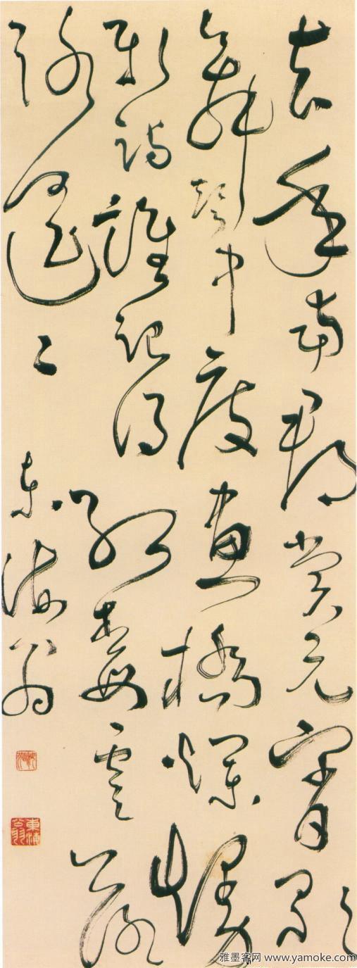 《草书七绝诗轴》,纸本。纵98.9厘米,橫36.4厘米。释文:去年南郡赏元宵,歌舞声中度画桥。烂漫新诗谁记得,红梅零落路遥遥。此书迹用笔、结构和章法娴熟,信手走笔,疾如骤雨,矫若游龙,一气呵气。只是应酬之书,常不满意,故有精粗之分,诚如当年广东书家陈献章所品评:“好到极处,俗到极处。”钤“汝弼”朱文印、“东.....