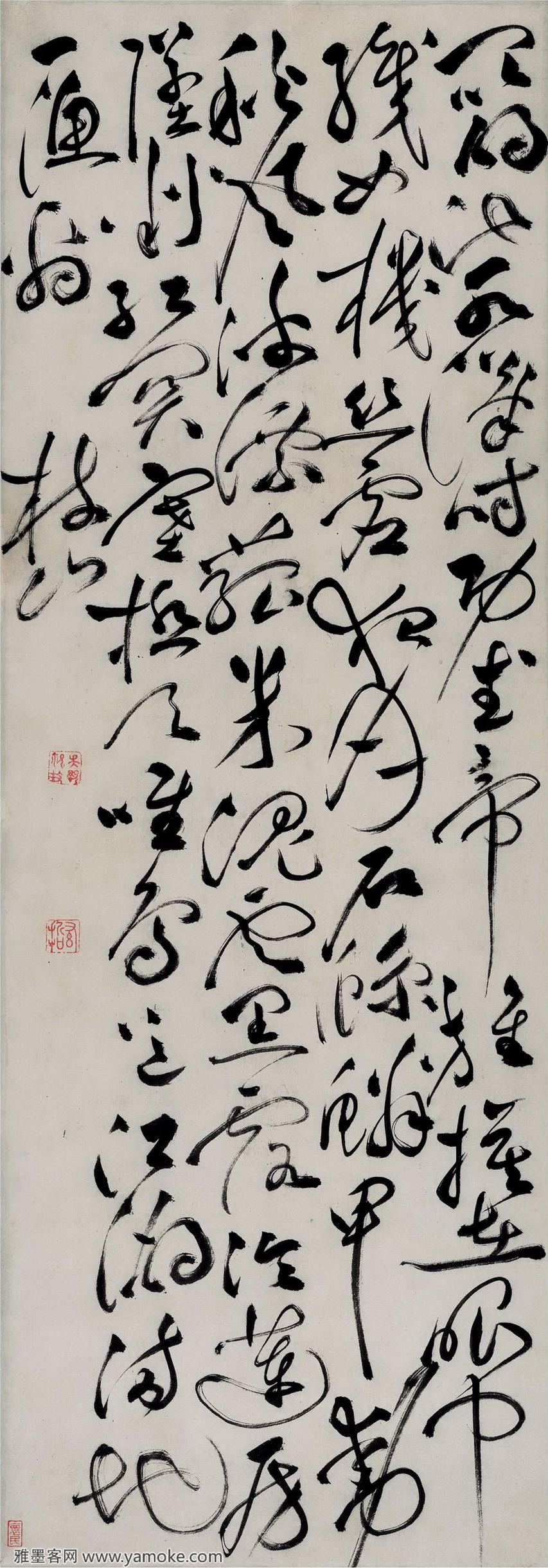 草书北郭访友诗 明祝允明南京博物院 纸本 立轴 墨书 51x149厘米此轴为祝允明55岁时任兴宁县知县期间写的一首物候诗,是作笔墨淋漓,使转精妙,是其晚年的书法精品。钤印:作者印:允明、吴郡祝枝收传印:吴湖帆收藏印.....