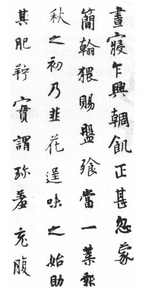 王羲之行书的字形也很讲究长短、宽狭、肥瘦的变化。如“爱”之长与“比”之短,“谢”之宽与“送”之狭,“省”之肥与“善”之瘦,对比强烈,生动成趣。